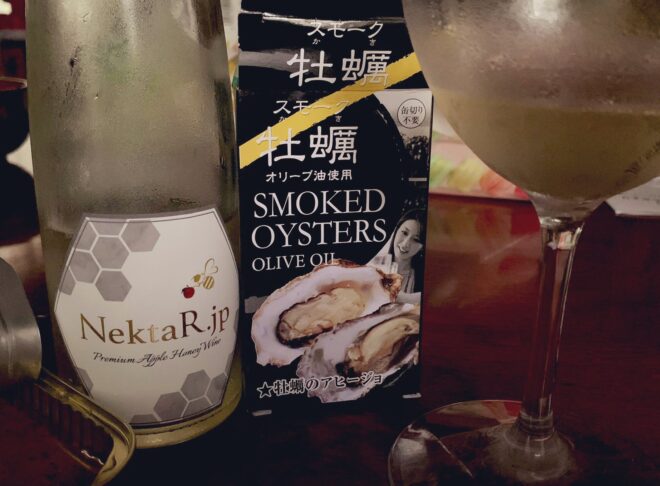 缶詰オツマミも豊富な信濃屋様でのイチオシは牡蠣スモーク缶です。甘口のミードはオイスターとのペアリングも美味しいです。